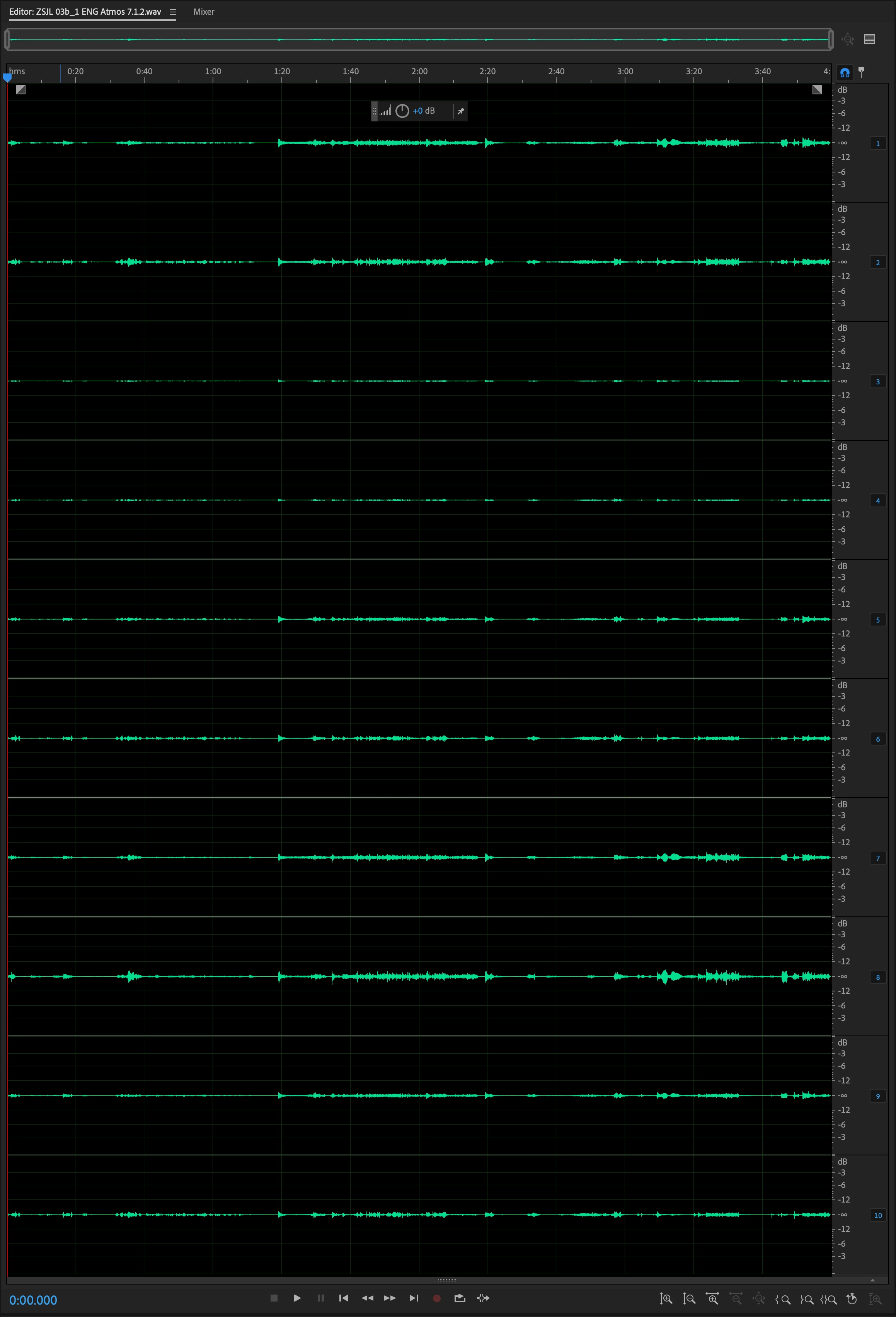 However if I create a new file with multiple channels (click here to download file 2) which is basically an upmix of the above audio file from 5.1 to 7.1.2 and then I try to name the channels manually on the right by right clicking and assigning each channel to a speaker (L, R, C, LFE, etc.) and then save it back to WAV (file 2 here), when I reopen it, all channel information is lost and all the tracks go back to being numbered 1-10 (screenshot below).