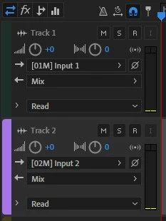 In a multitrack session, for my individual audio tracks I have the input set as one of the two inputs on my Scarlett and the output is set as mix.