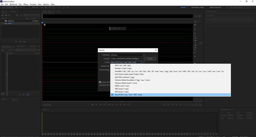 Where is the option in Audition to save as .sesx? It won't come up in the save as box under formats?