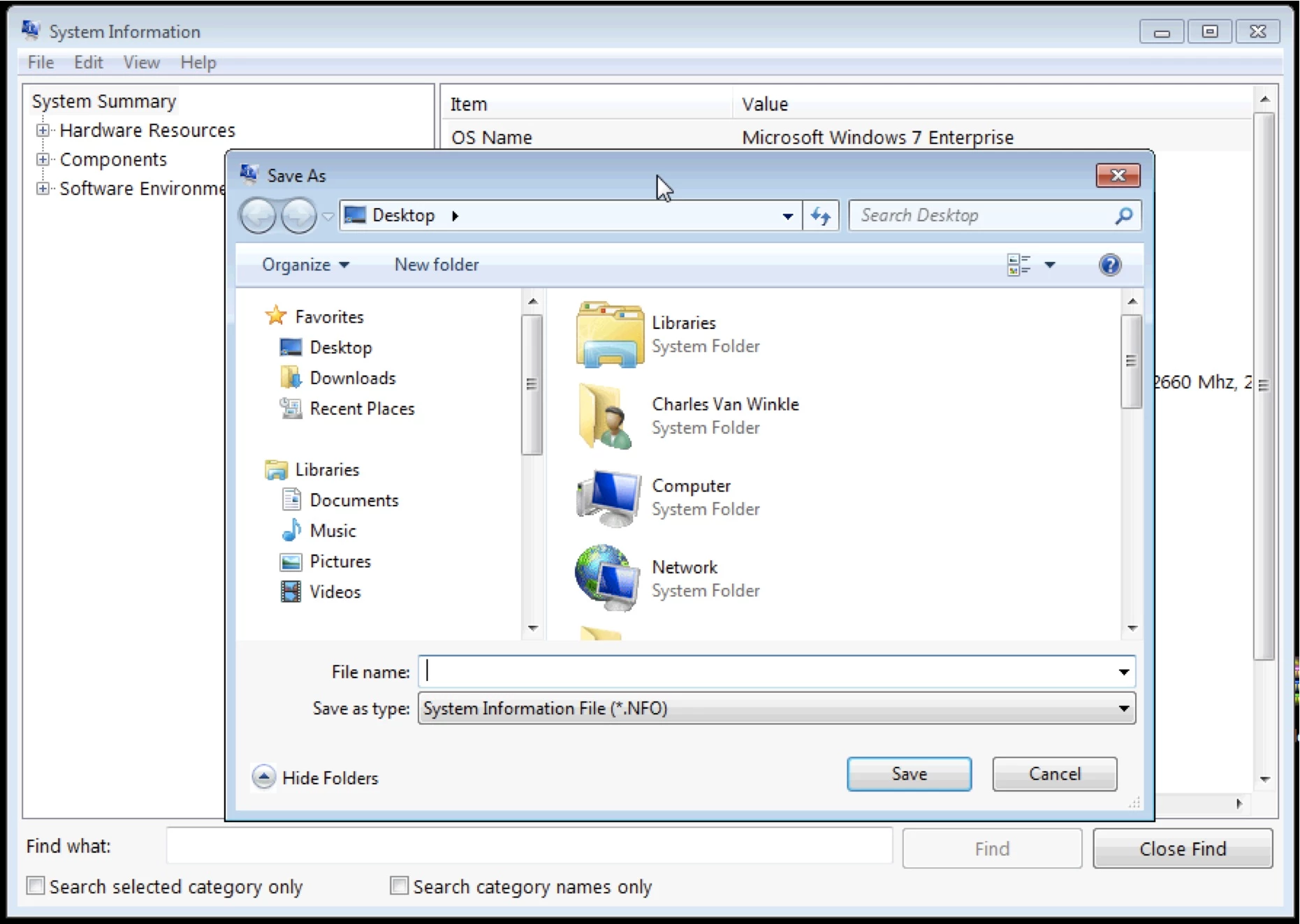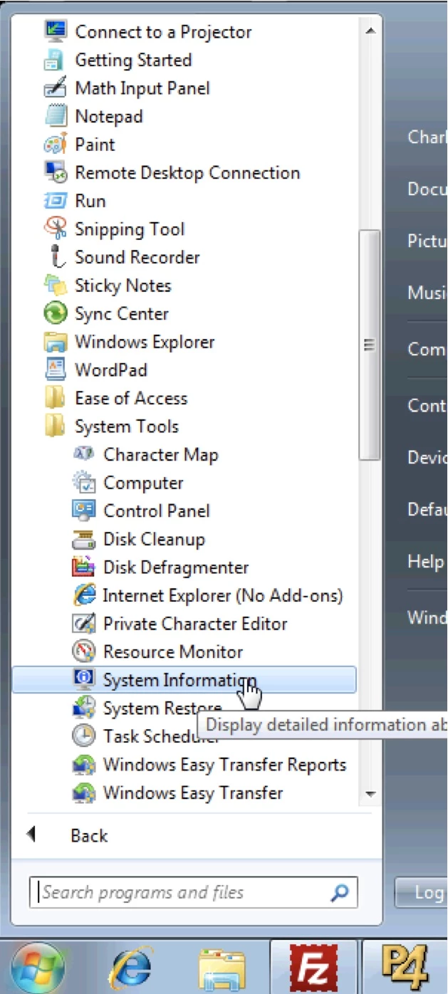 Go to the Start Menu > (All) Programs > Accessories > System Tools > System Information |