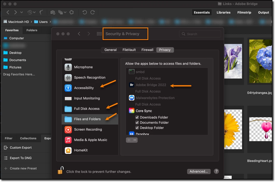 P.S. This is a brand new computer and yesterday was my first time using Bridge. I'm still thinking it's a permission issue—Macs are so protective.
