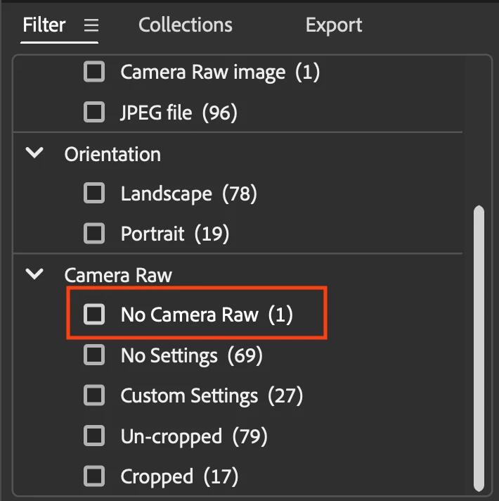 Some of my files, in several random folders are now marked as "No Camera Raw", and I cannot open them directly in Camera Raw. Both the shortcut (Cmd+R) and the "Open in Camera Raw" button are disabled.