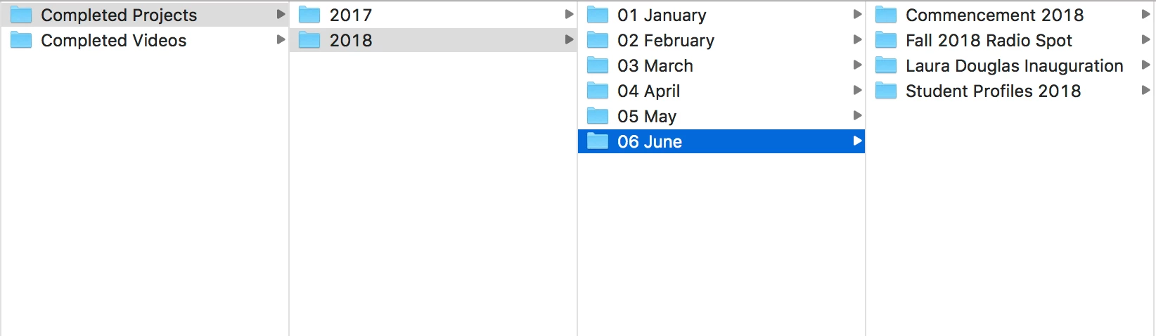 I work at a college and I film all sorts of events and other projects throughout the year. I also produce a variety of interview-based projects and I use the aforementioned footage for b-roll. I have footage stored across a couple different drives and in a variety of subfolders. However, I can't seem to find a good way to search through these clips short of manually scrolling through each project and folder individually. I've included a screenshot so you can see what my folder structure looks like: