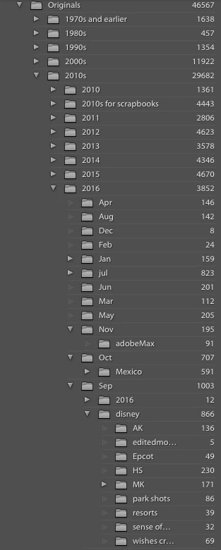 My only concern now is how to organize my photos in Bridge? I saw that people usually have a very detailed and nice file structure, consisting of different folders with proper names (type of photo, country name, etc.) so that they can find their pictures very easily. Does it mean I have to copy/paste my pictures in another file structure, though it's already existing in the LR catalog ? If yes, I would have a problem with the storage...My LR catalog only has date folders (2016, then 2016mmdd for each different day), so it's not that detailed compared to what most people use as a folder structure in Bridge.