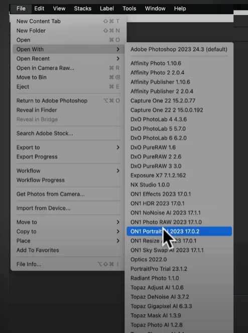 "Open With" allows Photoshop Plugins to be used from Bridge