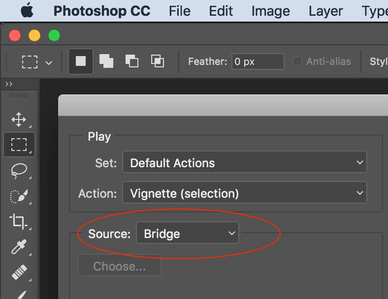 Launch Photoshop action on images selected in Bridge