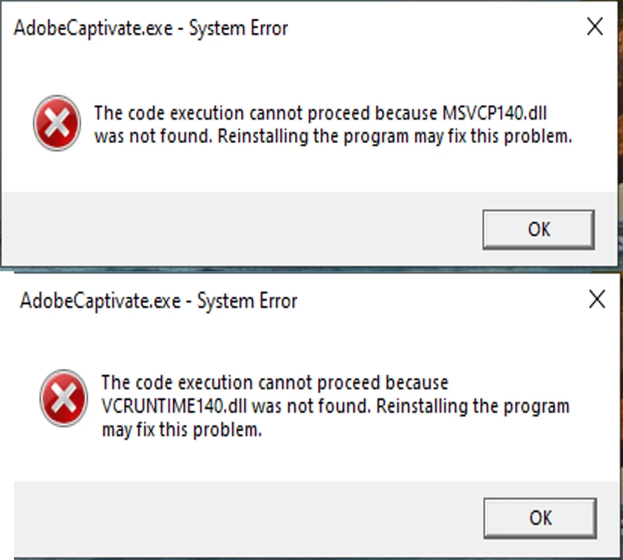 After i downloaded ad installed Captivate 2019, it fails to launch with the below error messages. Help please?