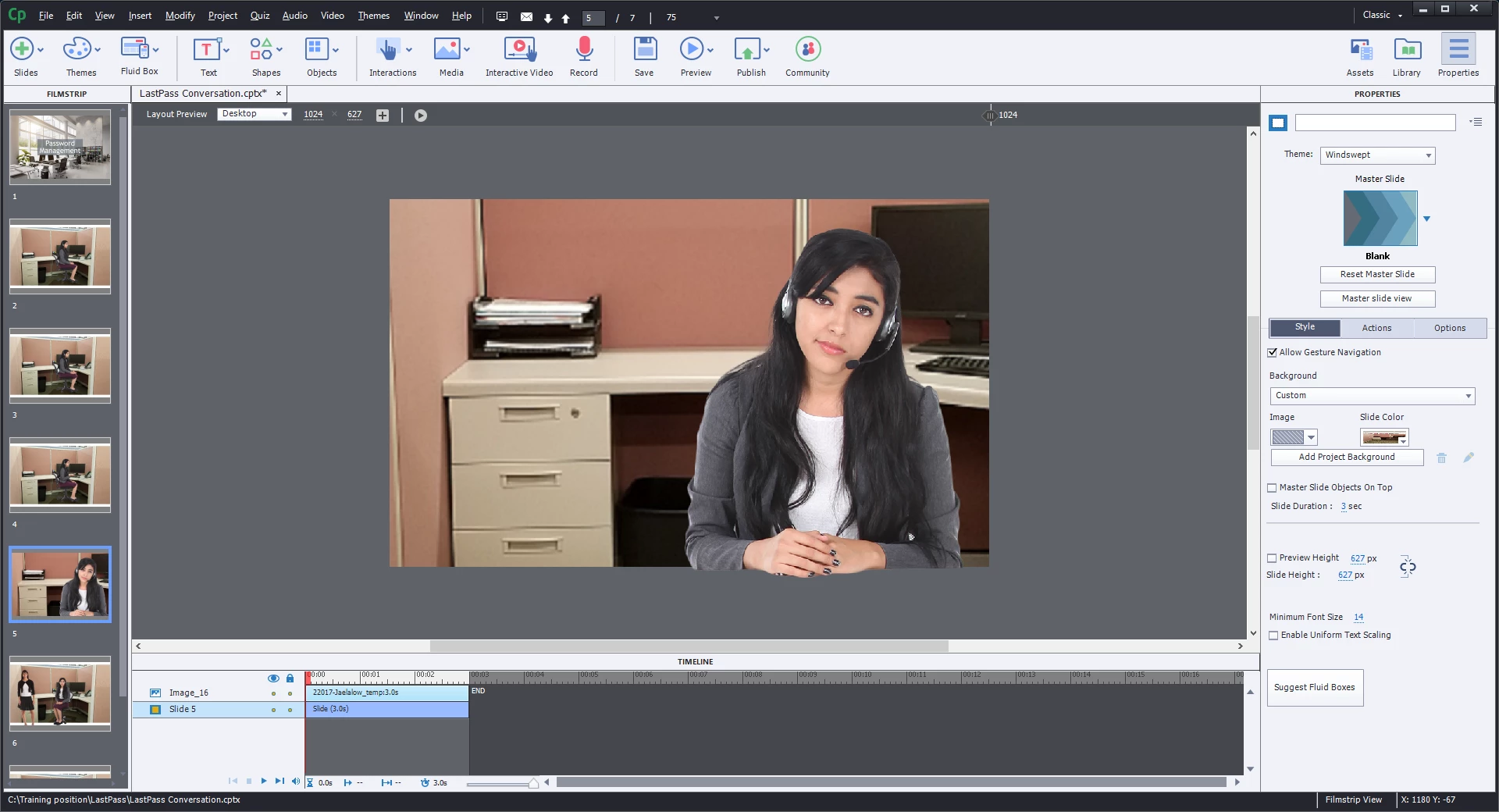 You are very new to Captivate correct? If you need different background images, why do you not use master slides? I see several slides in the Filmstrip with the same background image.Seems strange that you use the Blank master slide over and over again, because that one is meant for PPT import and software simulations.