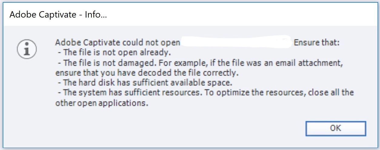 Hello. I used the trail version to create several projects. My company then purchased Captivate 2019 for me and I downloaded through our software center. Note: I did not recieve a license for the trial version I was using, the licensed version was a seperate download and the trial version was deleted. Now I find that none of the projects I was working on will load. I get the same error for every single one of them.