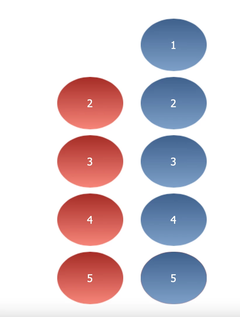 A draggable red-object (#1) disappears when dropped to its corresponding droppable blue-object (droppable #5).