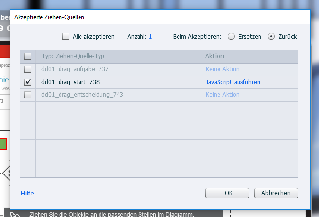 I am sorry. This does not help, however. Could you tell me how I can execute Javascript "on reject"? Giving a drag or drop object various states does not help me with this. Feel free to send English screenshots. I am sure I will be able to understand them. : )