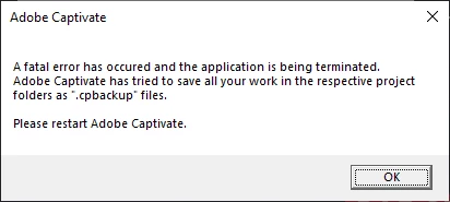Fatal Error Captivate 2019 Release