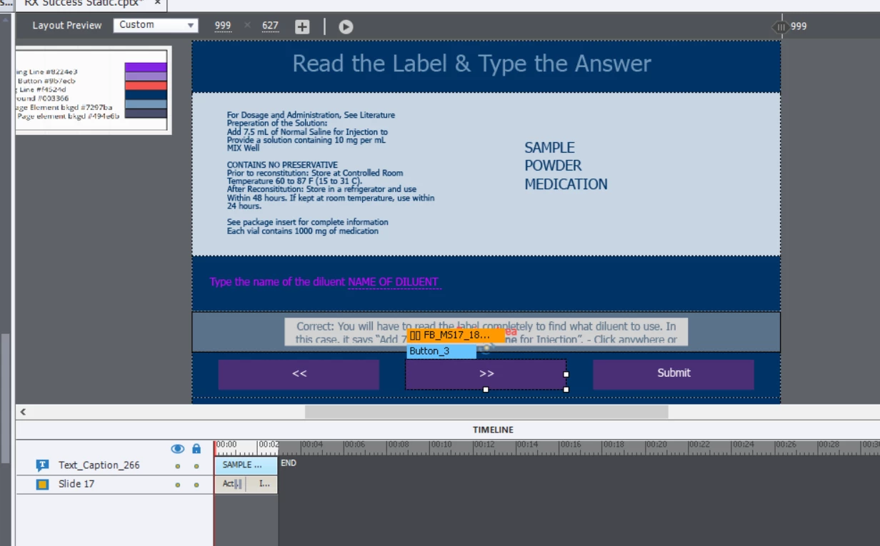I'm using the built in fill in the blank Master Slides. When I am working in the editor there are forward and back buttons on each question but when I preview they disappear. In the quiz options section I can click "back" under buttons but I'd prefer to have these buttons that are already there show up. What can I do?