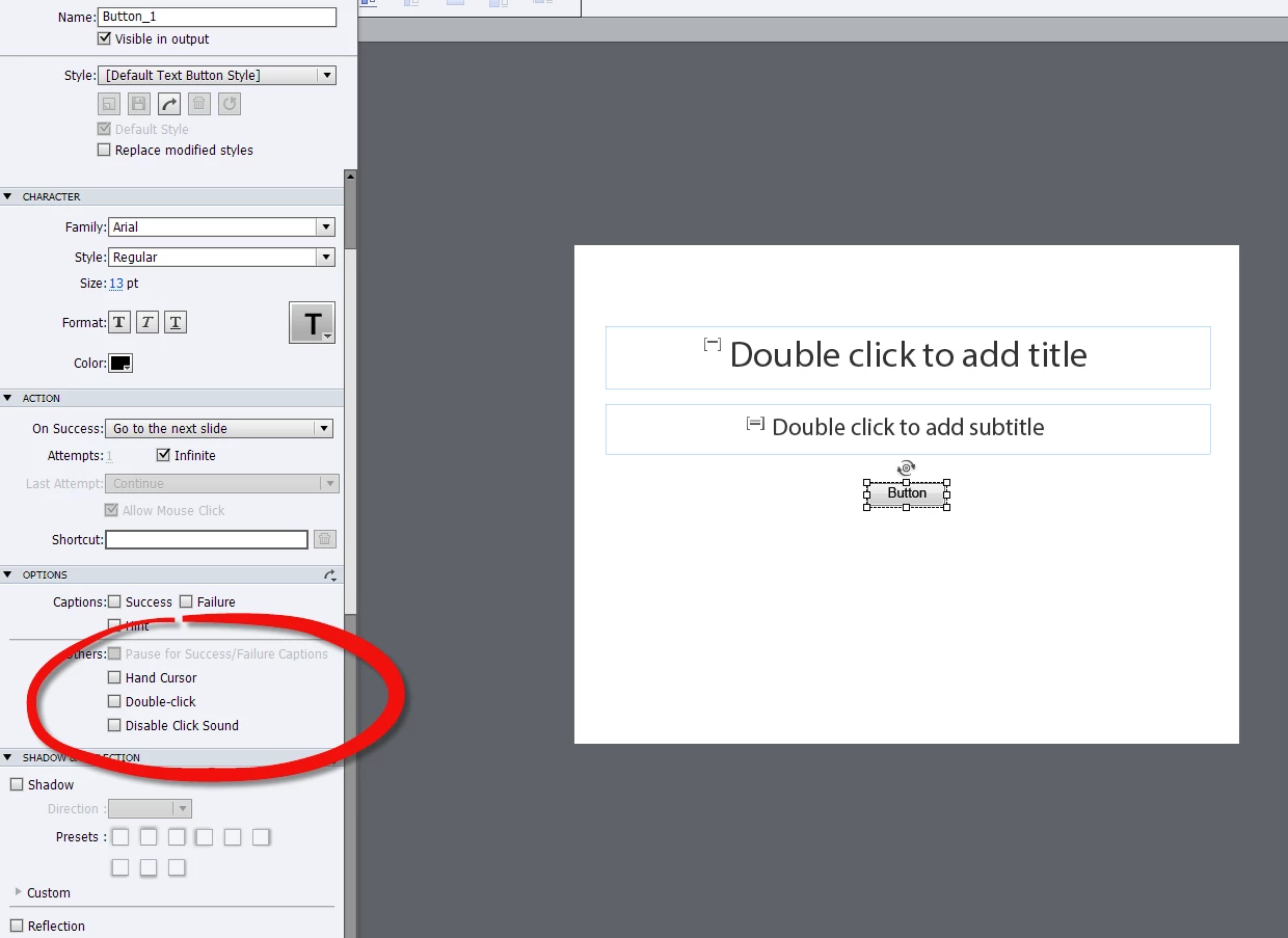 I have an Adobe Captivate 7.0 project for which I've created custom navigation buttons. I have used "standard" commands such as "Go to the next slide" and "Go to the last slide visited," as well as more complex Advanced Actions that end with a "Jump to slide" command.