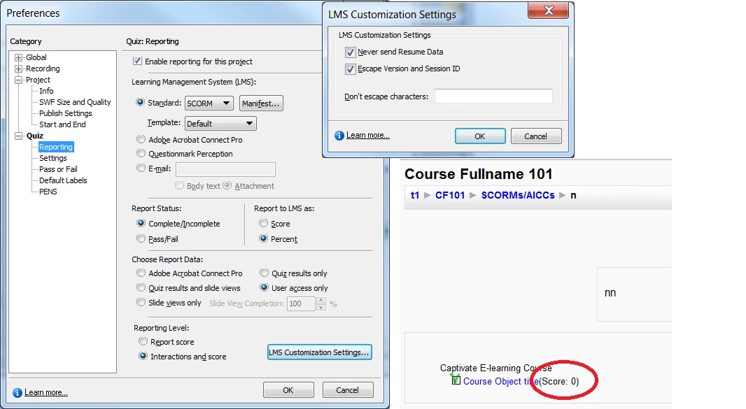 I uploaded captivate 4 to scorm 127 to moodle and had the score value even though it is not a quiz, how to remove it?