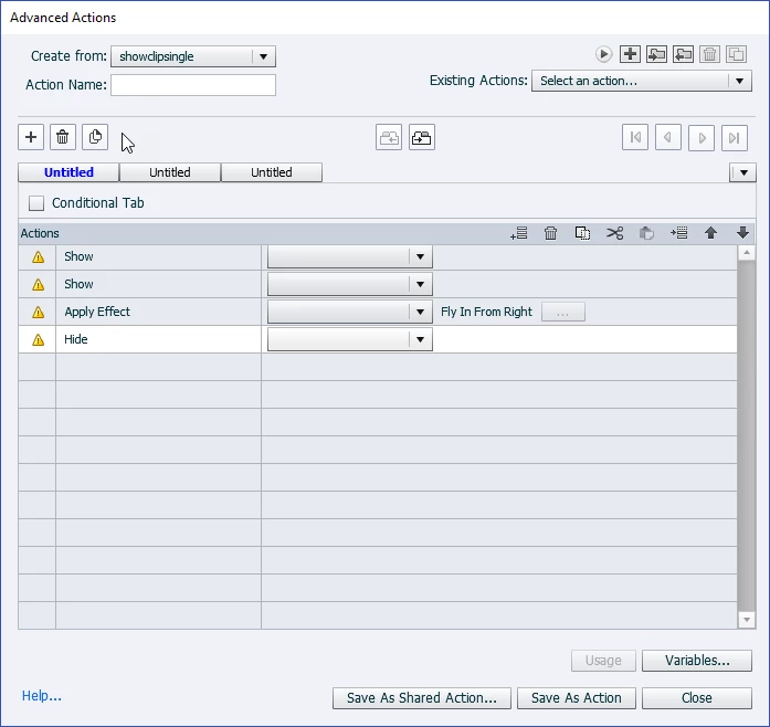 I am trying to find a solution to a problem I am seeing when my project is published in HTML5. I do not see this problem when published as a swf. In my project when the learner wishes to view a corresponding job aid step, the learner clicks the job aid button and an image of the job aid step slides in from the right side of the screen for viewing. This in done using a shared advanced action. I have slides in the project which behave as described. The problem I see and this is random in nature, is the job aid image will flash in the final resting spot then animate in from the right. Other than being annoying, this does not cause any navigation issues with the project, just an annoyance. I have tried different ways in my advanced action to enter/show the image but nothing seems to make this any better. Any suggestions will be greatly appreciated.