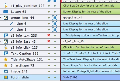 I original had them set on a master slide, but they weren't showing (if I click master slide objects on top, everything disappears behind a white screen?).