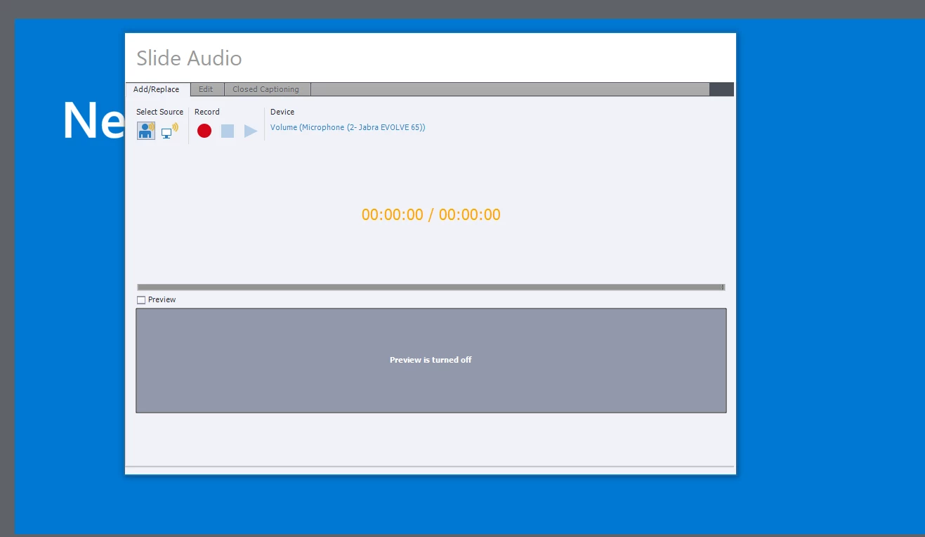 I just updated to Captivate 2019. Now when I click on record for a slide, the "Slide Audio" dialog box opens up, but I can no longer see the buttons at the bottom of the screen. Adjusting the window actually makes it worse. I tried tabbing through to the buttons, but I can't see what is highlighted, and it appears that they aren't listed in tab order. Since I've never needed it previously, I don't know what the keyboard shortcuts are for the buttons.