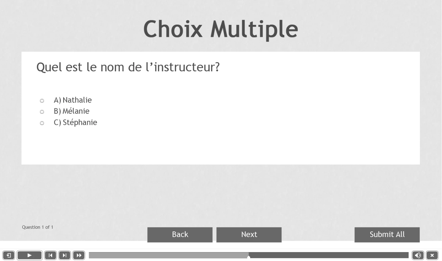 This is what the quiz slide lloks like: (I understand there are different themes....I want to make this custom, not as of any of the existing tiles)
