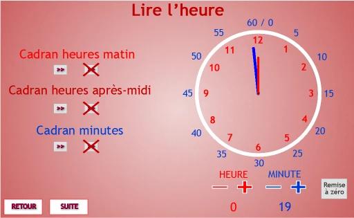 I also made a button to reinitialize everything (Remise à zéro) but I don't know how to make the hands returning to their initial positions (vertical)...