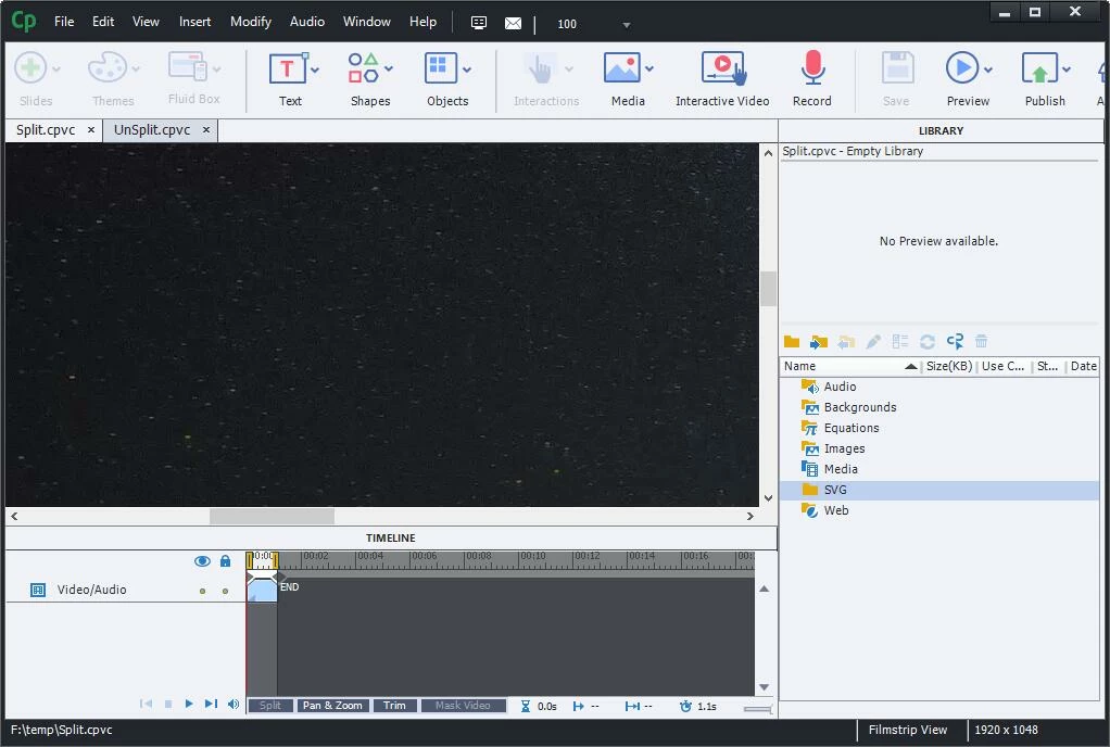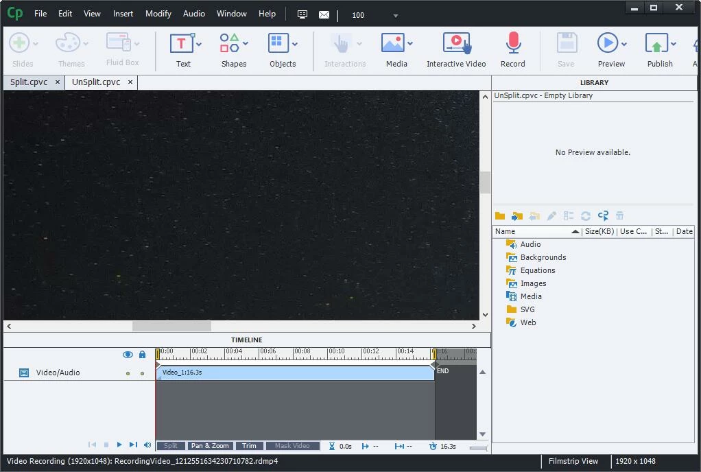 Why the cpvc file size haven't changed when split Video Demo and deleted item in labrary from Captivate2019?