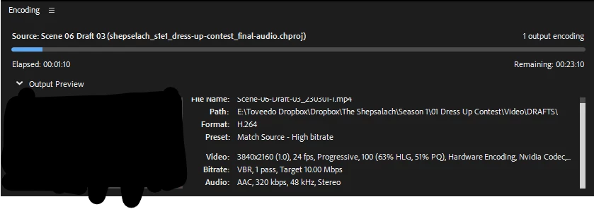 - Output File: E:\Toveedo Dropbox\Dropbox\The Shepsalach\Season 1\01 Dress Up Contest\Video\DRAFTS\Scene 06 Draft 03.mp4