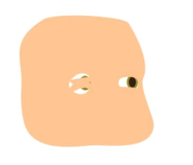 it's hard to see what's causing the situation, but the positioning of the eyelids is off. The bottom one is too far up and the top one is too far down. Is this meant to blink?