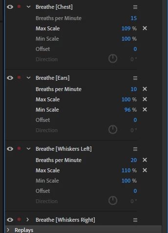 I set the Breath behavior controls as shown in the attached image. Also you can play the video at this URL: https://vimeo.com/459501624