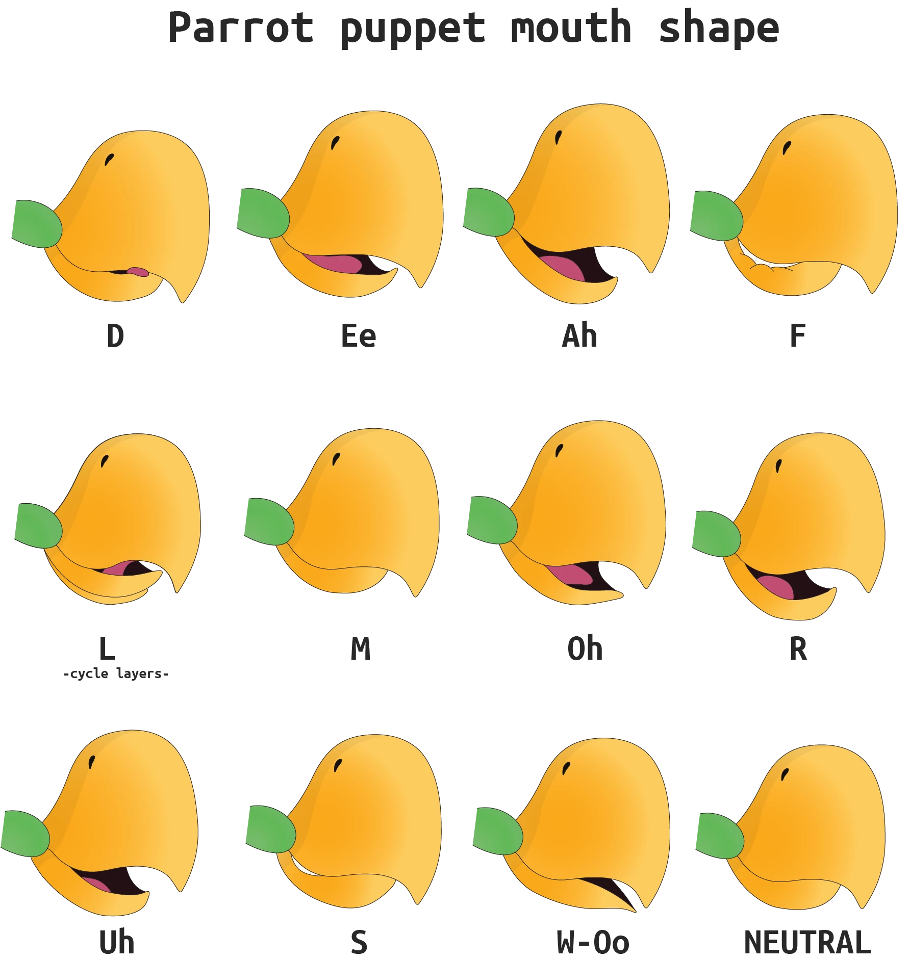 I'm having a hard time to get this parrot puppet right. It's my first time making an animal puppet, and I can't seem to find a good material on bird lip-sync for animation. It's more of a design problem. Can anyone help me please?