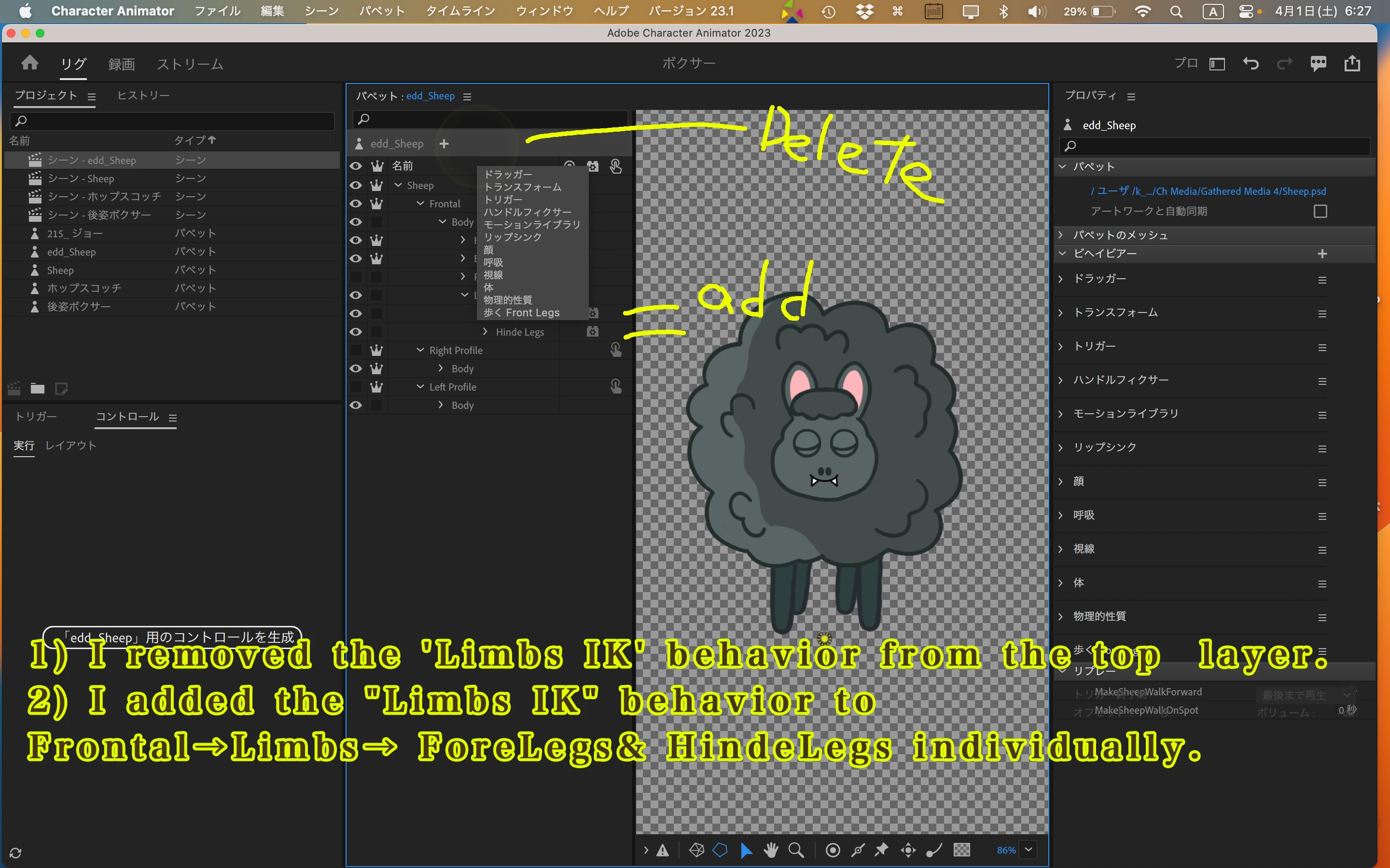 So I have been trying to implement Limb IK for a Four Legged character. Followed the usual tutorials from Okay Samurai. The issue is that IK only recognizes one pair of legs and roots to ground only on that pair. The other pair just floats but it works on with a walk cycle. What Can I do to make the Character animator recognize both