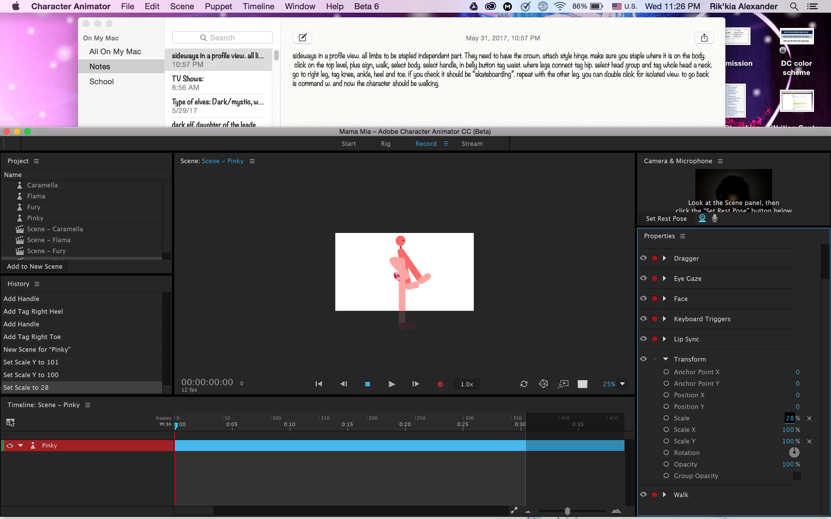 So I've been trying out the new walk behavior and every time the character legs bend in a weird way. So I wrote out step by step what to do in the video tutorial to see what I was doing wrong and I finally figured it out. When I first go to record a character it is always too big so I use the scale under transform to make it fit. That's what is making my characters walk funny. If I don't scale they walk normally. So my question is what size in photoshop should I be making my characters. I'm currently using 1800 x 2700. Or is there a way to make the scene on character animator bigger so I don't have to scale down the character.