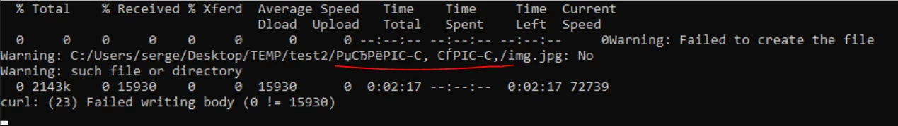 But if the path to the saved file is entirely in Latin, the file is successfully saved. And if I write a cmd line with a Cyrillic path, it also works.