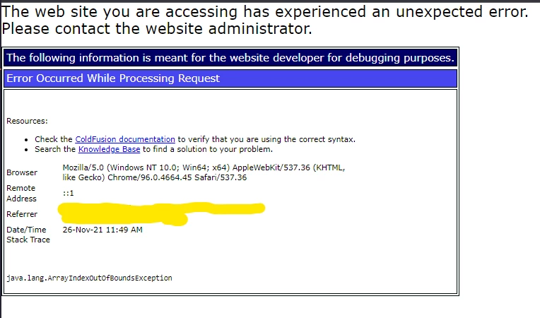 I just upgraded a server from ACF 2016 to ACF 2018 and I started receiving a strange java.lang.ArrayIndexOutOfBoundsException error message on some Query of Query (QofQ) statements.  What's strange is that the exception only occurs when I have SELECT * in the statement.  When I actually specify the columns by name, the exception goes away.