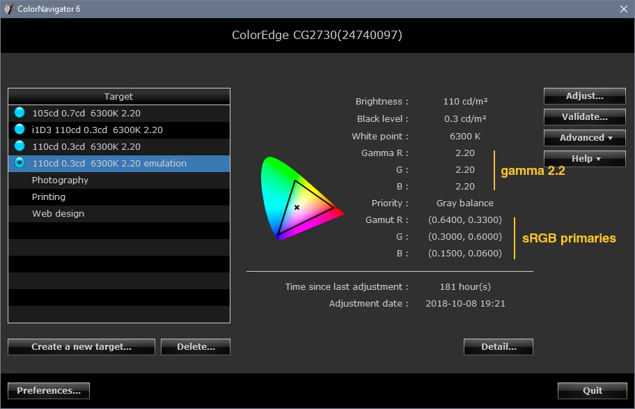 Benq SW2700PT sRGB mode gamma - no linear section