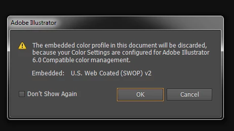 Hello. I am using Adobe AI CS6 and am trying to open a file that has used U.S. Web Coated (SWOP) v2 and since for some reason I don't have that, it wants to convert to AI 6.0 Compatible which I do have. So after some searching, I was able to find what i thought was the solution--ICC profiles which includes what I need (http://www.adobe.com/support/downloads/product.jsp?product=62&platform=Windows). However upon going to Edit>Color Settings>Load, it only accepts .csf files but what I found are .icc files. Obviously I have no idea what I'm doing here and just need to open this file properly. Any insight from someone that is actually knowledgable on this stuff? I appreciate it!! Thank you. [EDIT: I assume the solution would be to find the .csf version of U.S. Web Coated (SWOP) v2 instead of the .icc but I am unable to find those? Or I am going about this all wrong.]