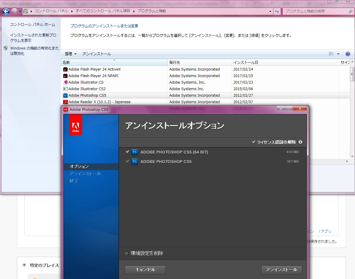 PhotoshopCS5は自分で購入したものなのですが、今手元に箱もインストールCDもないため、修復という方法が使えません。(シリアルはメモがあるため確認出来ます)