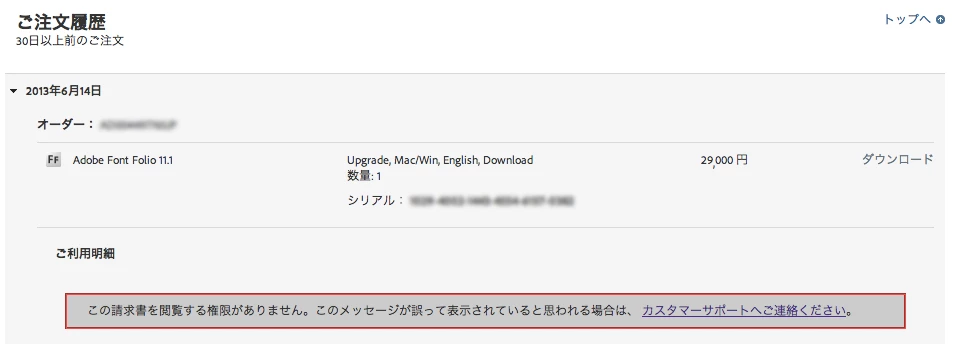 マイダウンロードに注文履歴が表示されない
