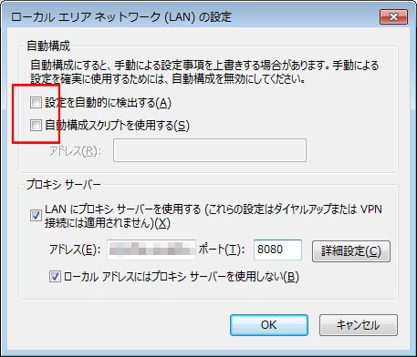 ※下記「設定を自動的に検出する」のチェックを外します。