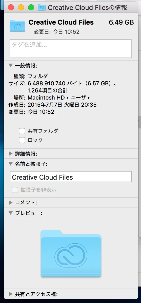 現在CCを利用しており、ストレージの使用量は50G程度と表示されておりますが、CCフォルダ自体は実質7G程度の容量です。
