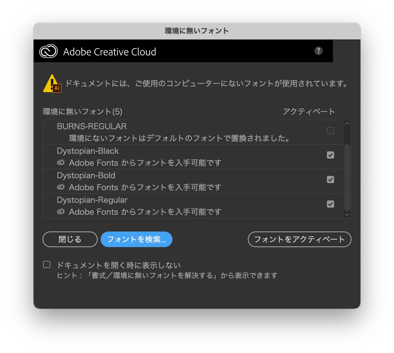 Adobefontがillustratorでアクティベートできません