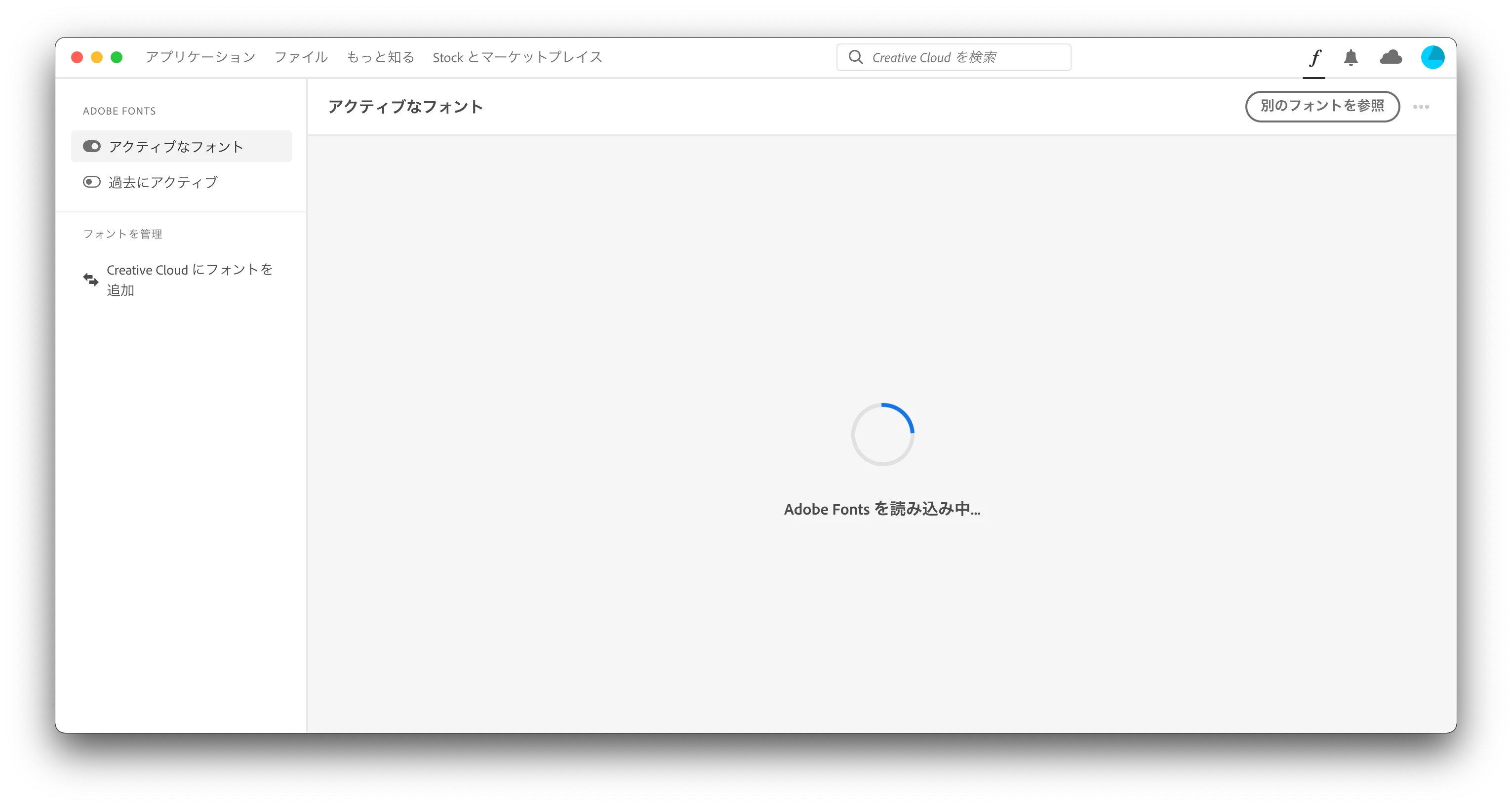 ・CreativeCloudアプリでは、Adobefontを表示してもずっとぐるぐるしていて何も表示されません。