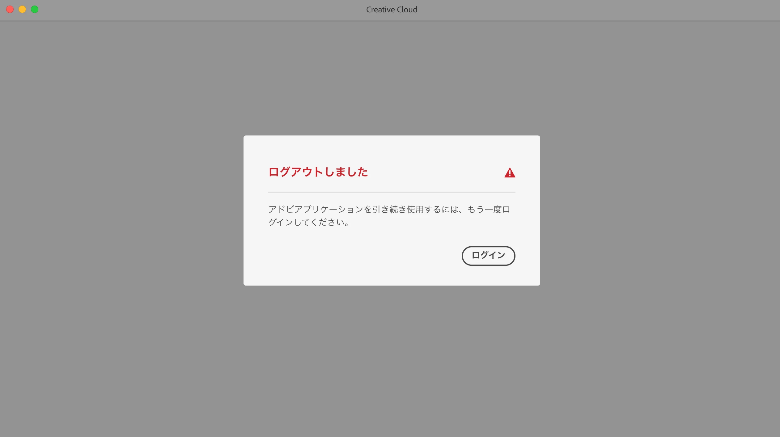 creative cloudを開こうとすると「ログアウトしました」と言われログインできません