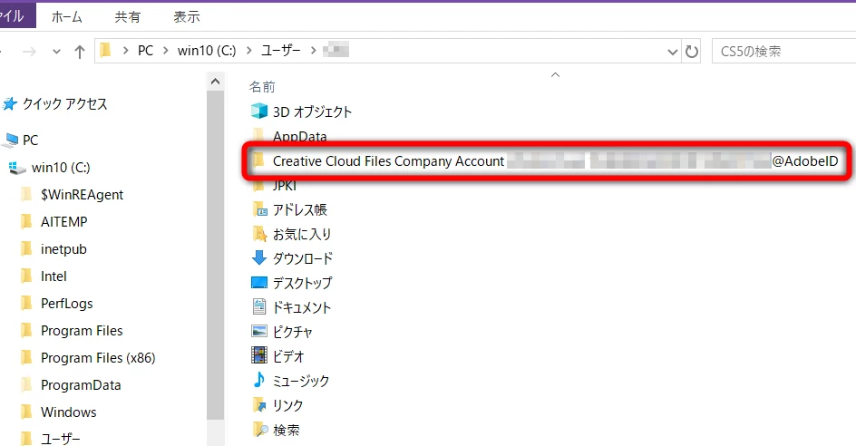 エクスプローラでユーザーのフォルダを開き、次のようなフォルダがあるか確認してください。