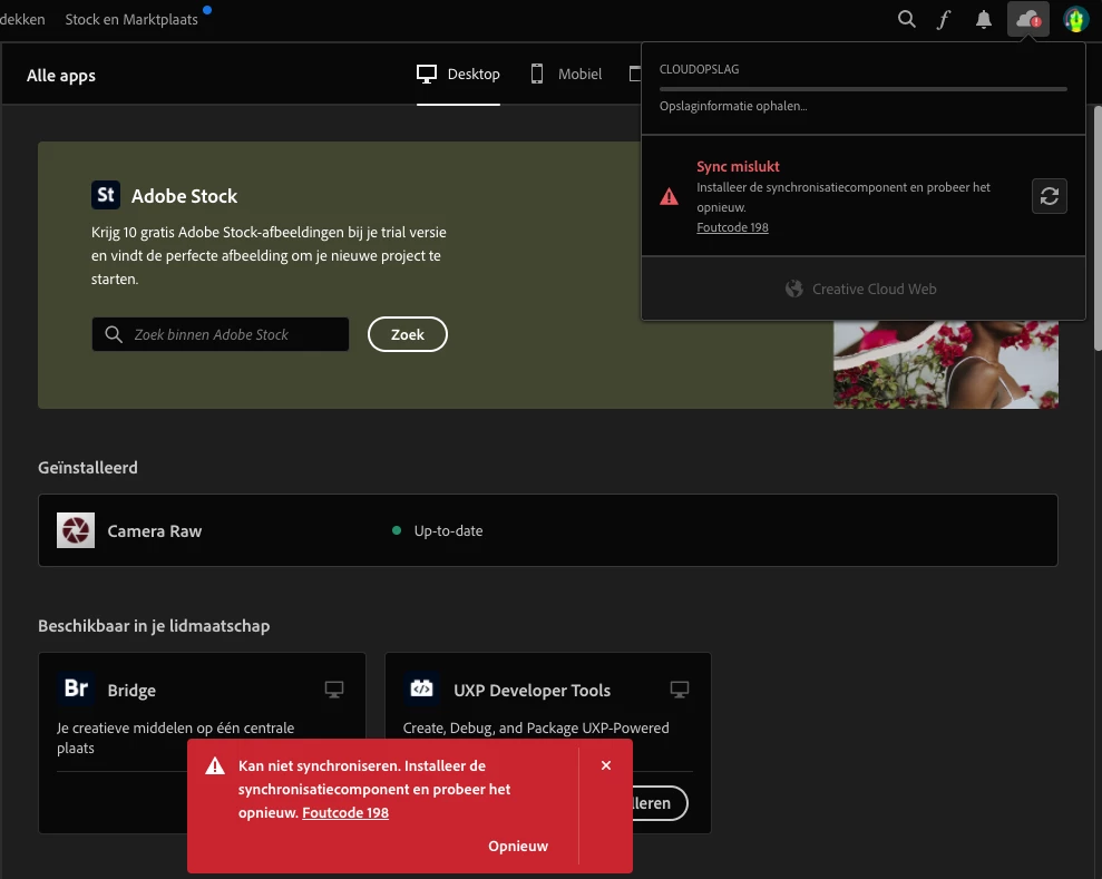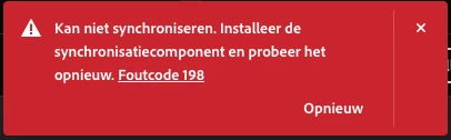 I'm not able to sync in the Creative Cloud. The errorcode is 198. And it says to install synchronisation component. I tried