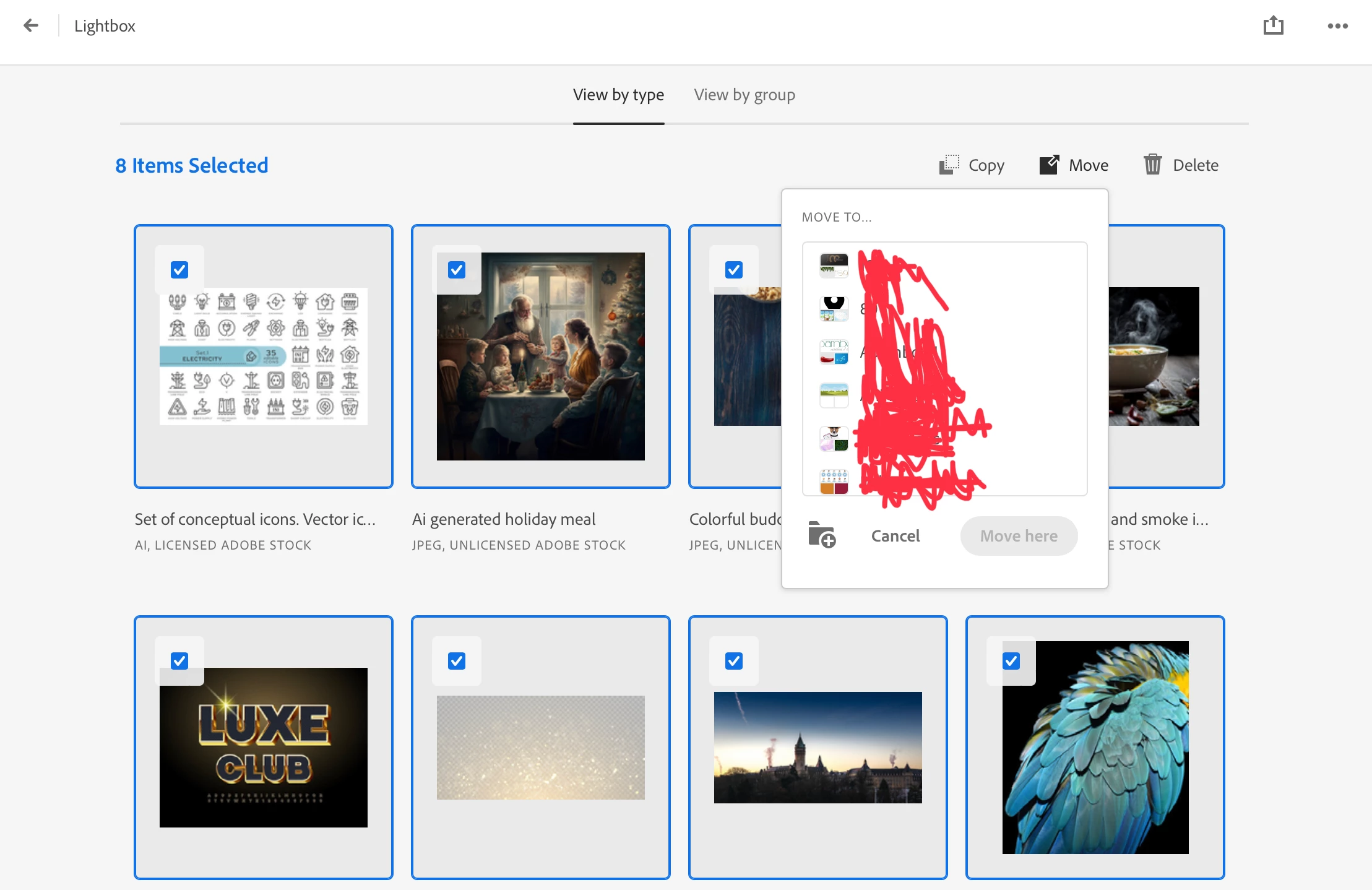 1. I have over 1k images in My Library. I have to change it by moving licensed images to my Licensed Images library in one action, or others in groups of, say 15 to another library. I must do this in 2 steps: 1. Open the single image, heart it to the default library, then change the library and heart it there. THEN I must delete it from the primary library. This will apply to about 400 images.