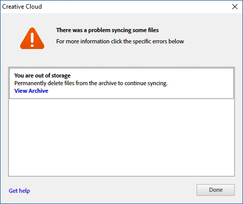 If you are subscribed to the Photography plan (Photoshop and Lightroom) then this plan only comes with a 2 GB storage quota.