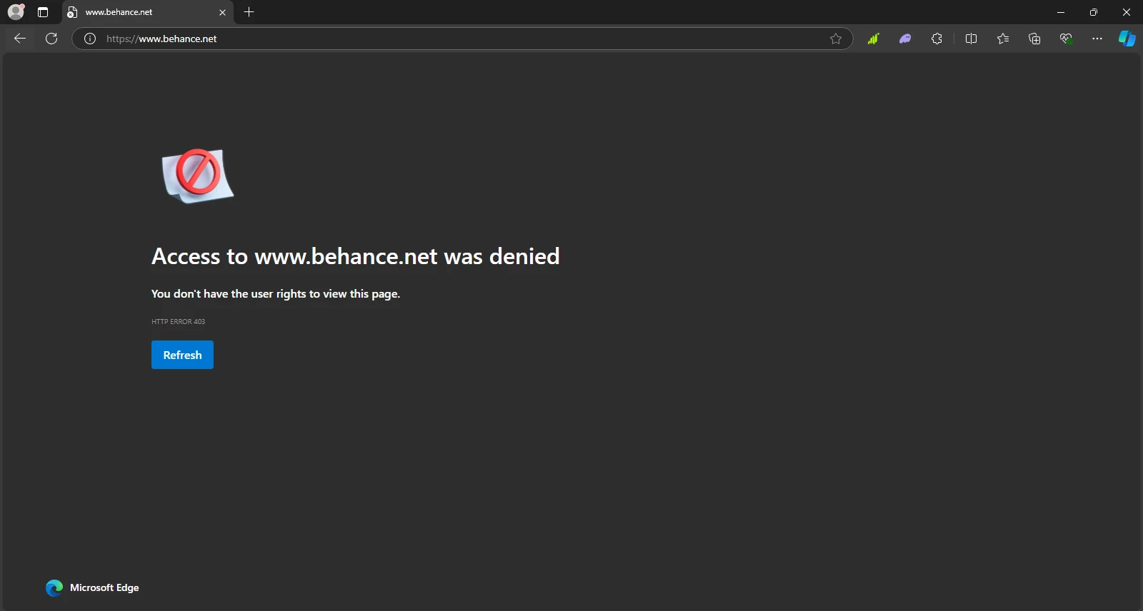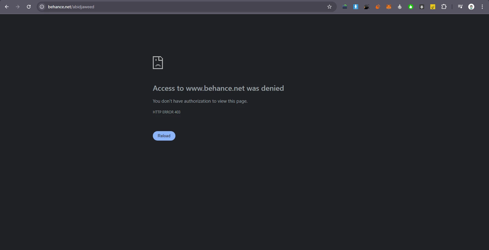 Hi, I am confused. For the last 6-7 days, I have been unable to access the Behance site. It always shows this message: "HTTP ERROR 403." I don’t know what the issue is. I have cleared my browser's cache and history, and I have tried different browsers as well (screenshots attached). Can anyone help me resolve this issue?