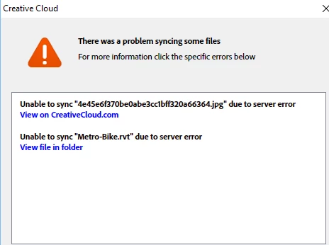 I can't sync to creative cloud and i keep receiving this message " Unable to Sync < file> due to server error". i am running a single user account and works on one PC. appreciate your help.