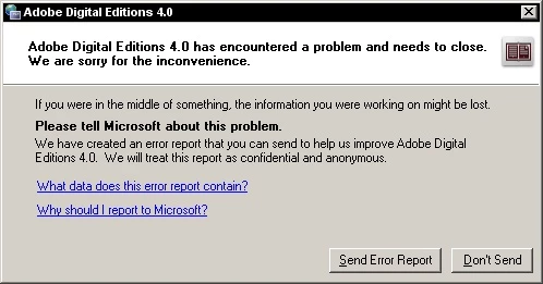 I'm a having a trouble in installing Adobe Digital Editions version 4.0 Windows xp.