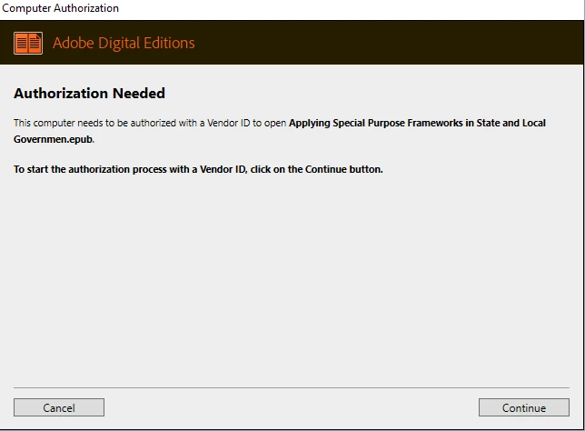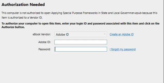I have my book, purchased from the AICPA, on a flashdrive. When I pull it up, Adobe Digital Systems asks for the authorization.